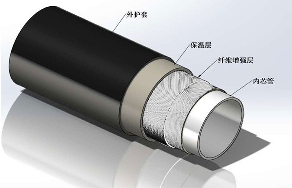管體由內到外分別為:內芯管、纖維(滌綸絲)增強、隔熱粘合層、外保護層